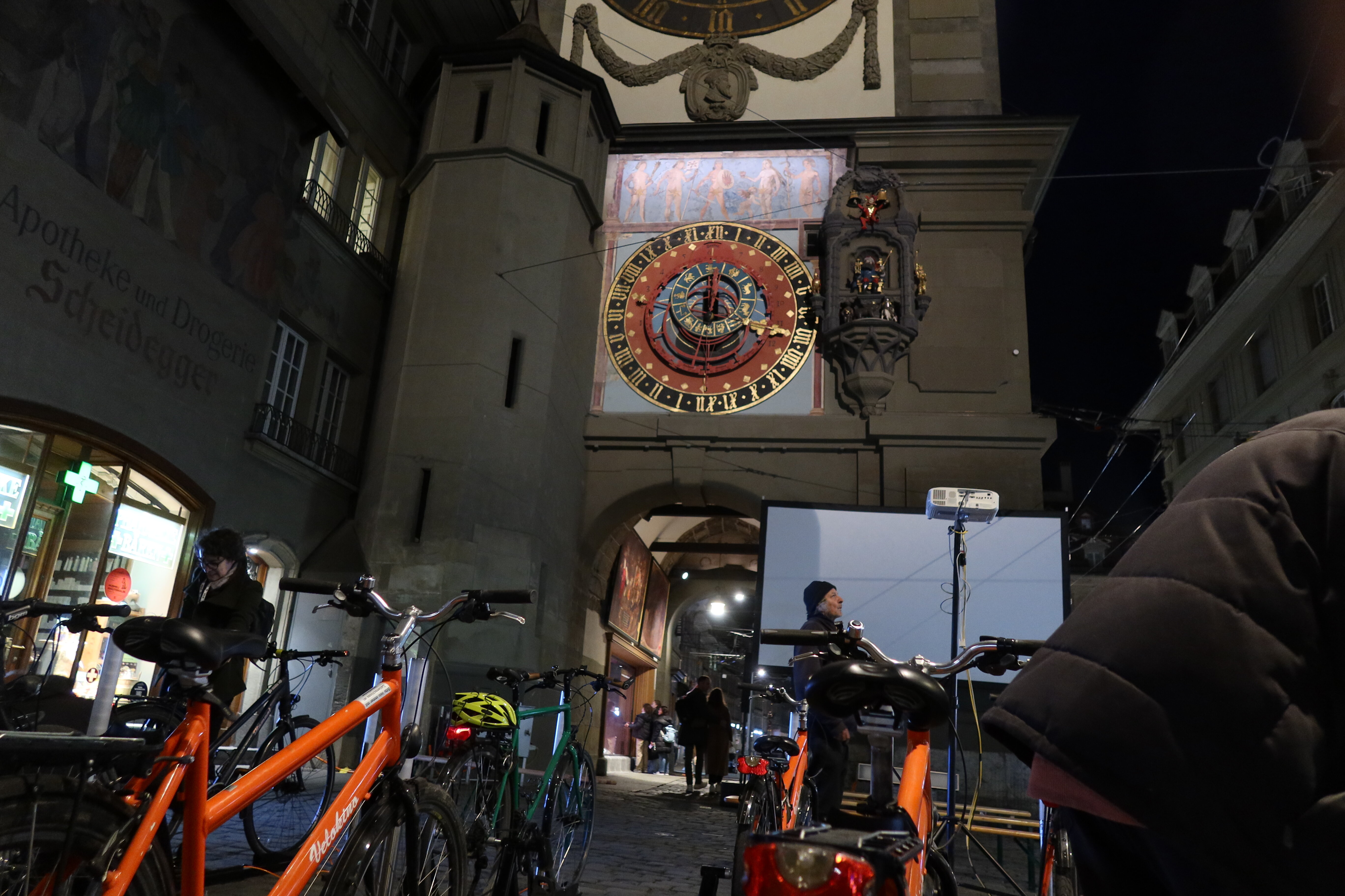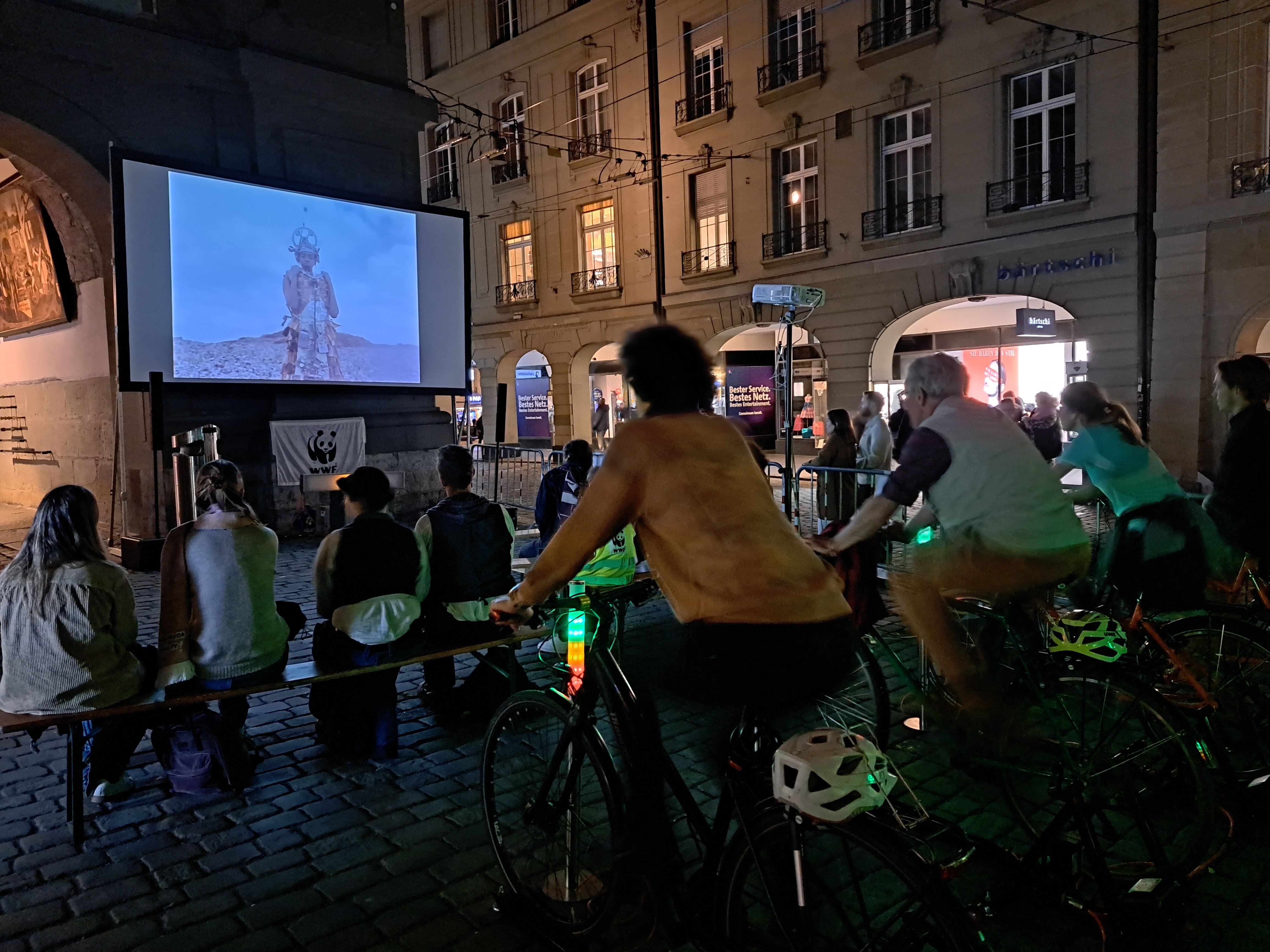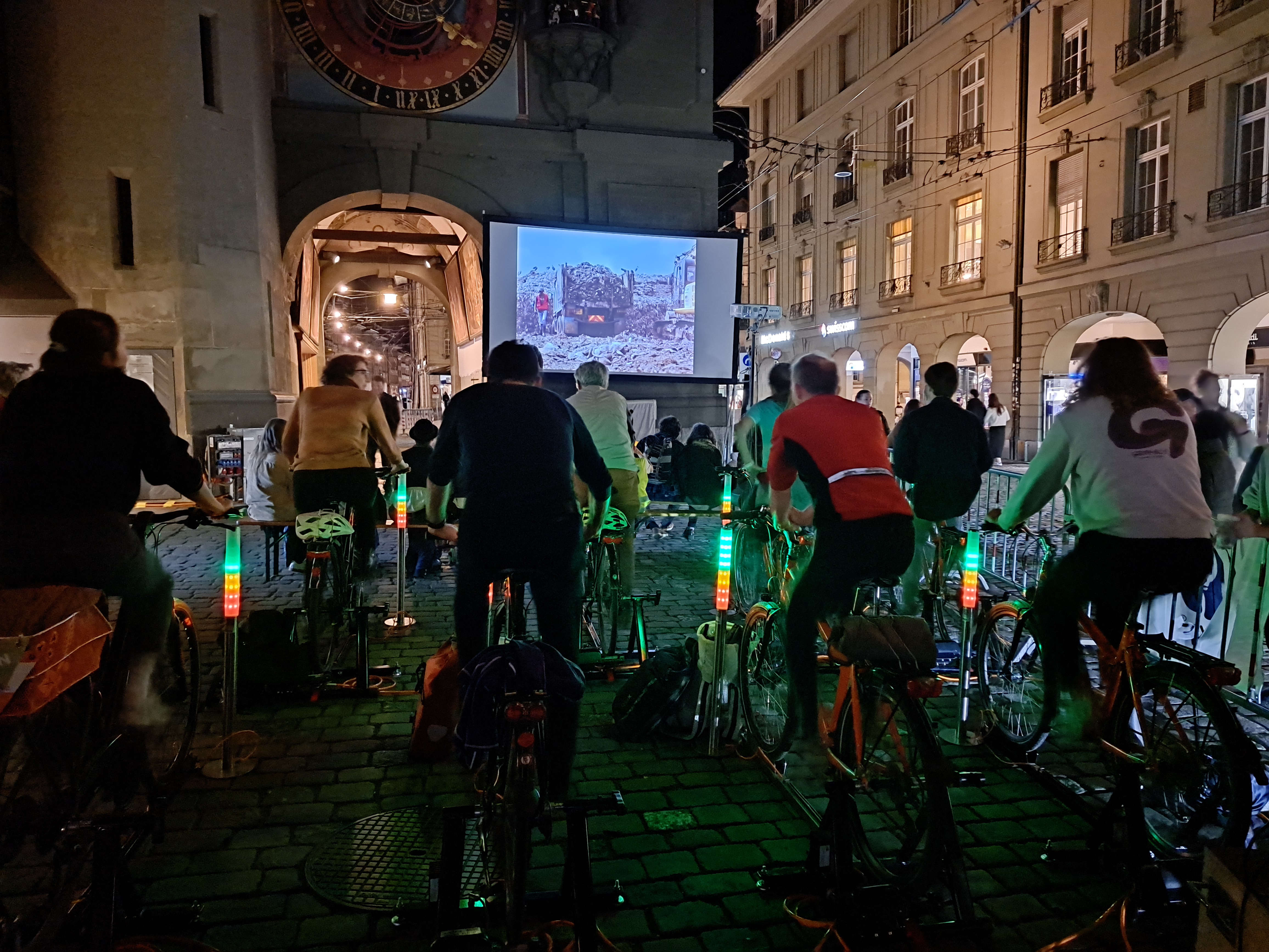 - Da es ein grosser Erfolg war, organisieren wir auch 2026 wieder ein Velokino an der Earth Hour. Am 28. März strampeln wir eine Stunde auf acht Velos, um den Strom zu erzeugen, um eine Stunde Kurzfilme zu zeigen, während die Lichter der Stadt Bern gelöscht werden.