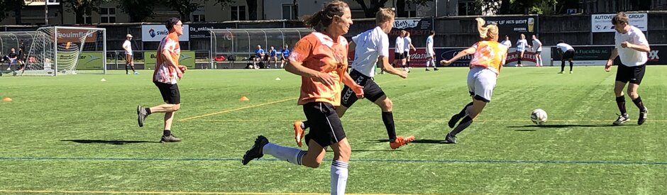 - Ein Team darf maximal drei lizenzierte Fussballer:innen und muss mindestens zwei Frauen beinhalten. Mindestalter 14 Jahre.