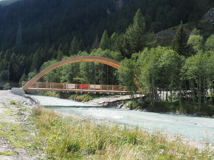Die von der FMV zu erstellenden Umweltmassnahmen bestanden u.a. darin, mittels Neubau einer Brücke über die Rhone, sämtliche Freizeitnutzungen an die Peripherie der Aue zu verlegen und eine Kernzone für die Natur zu schaffen. Die elegante Holz-Brücke, ein neues Wahrzeichen für Oberwald wurde so bemessen, dass sie auch mit dem Loipenfahrzeug befahren werden kann. Die Kernzone wird neu für die Rhone geöffnet. Durch die Ausbaggerung von Seitengerinnen kann dieser Bereich revitalisiert werden. Historisch gesehen war dies schon früher eine durch die Rhone ständig umgestaltete, ökologisch wertvolle Aue, die durch die Dammbauten in den 70er-Jahren trockengelegt wurde.